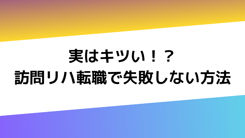 この記事では、訪問リハビリに転職する人にスポットを当て、失敗しないための転職方法をお伝えします。