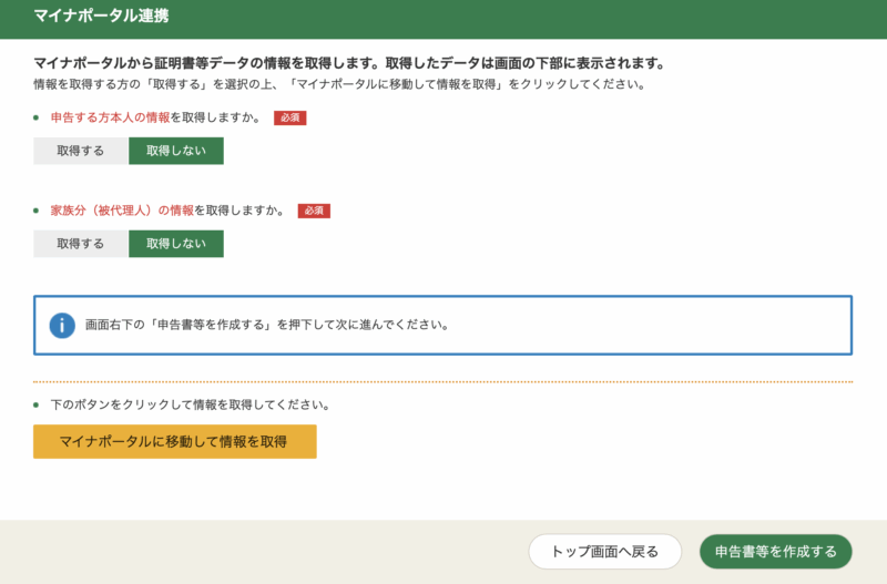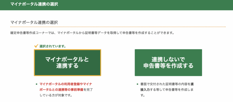 私は『マイナポータルと連携する』を選んでいますが、自分で打ち込めるなら連携しなくても良いと思います。