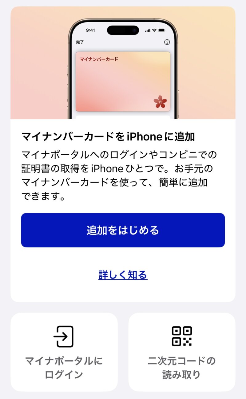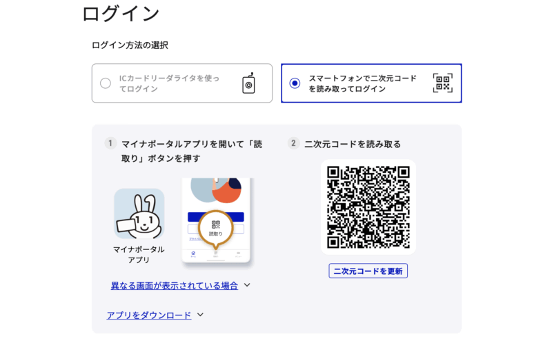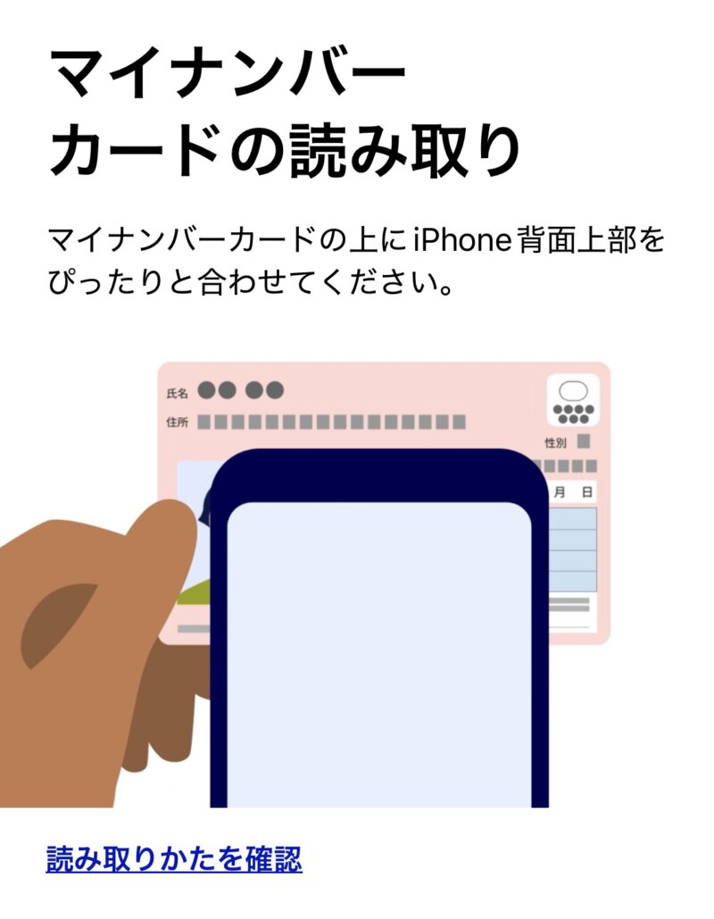 スマホでマイナポータルを起動し、手順通りに進めます。