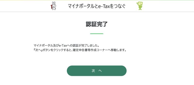 次にマイナポータルへ移動して、マイナンバーカード又はスマホ用電子証明書による認証を行います。