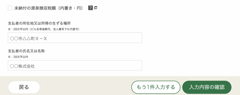 他にもお金をもらっている会社がある場合は『もう1件入力する』をクリックし、お金をもらっているすべての会社を1件づつ入力していきます。