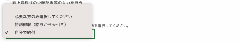 会社にバレたくない!と考えのあなたは、『住民税に関する時効の選択・入力』で必ず『自分で納付』を選択してください。