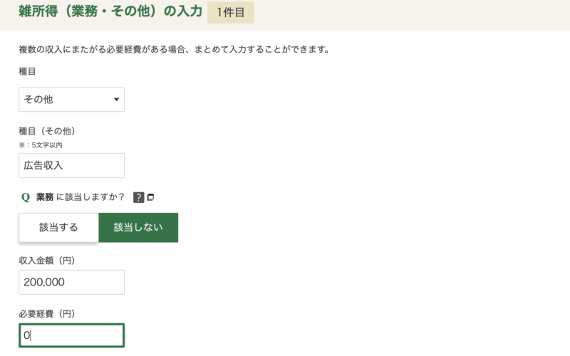 - 必要経費はそのお金を稼ぐのに使ったお金を入力。
