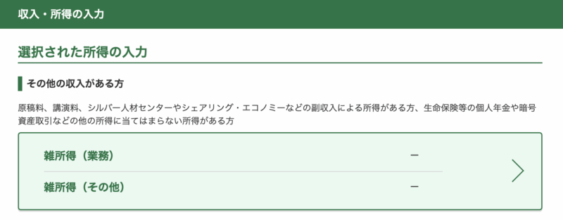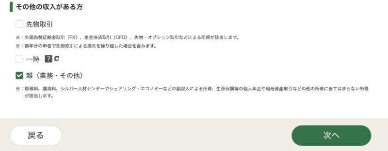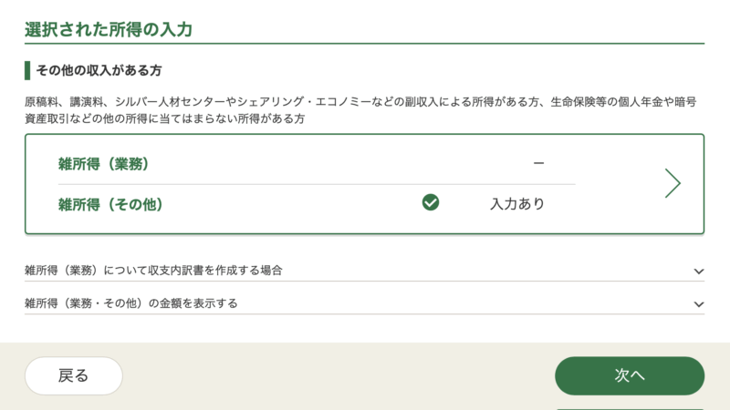 副業収入は雑所得なので『雑』にチェックして次へ。