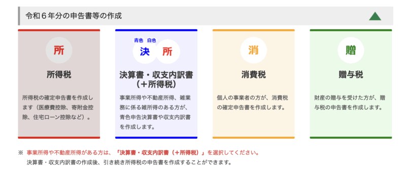 今回は副業の確定申告なので一番左の『所得税』を選びます。