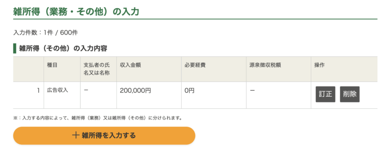 種目はいろいろありますが、Googleアドセンスなどの場合は『その他』とし、広告収入と記入してください。